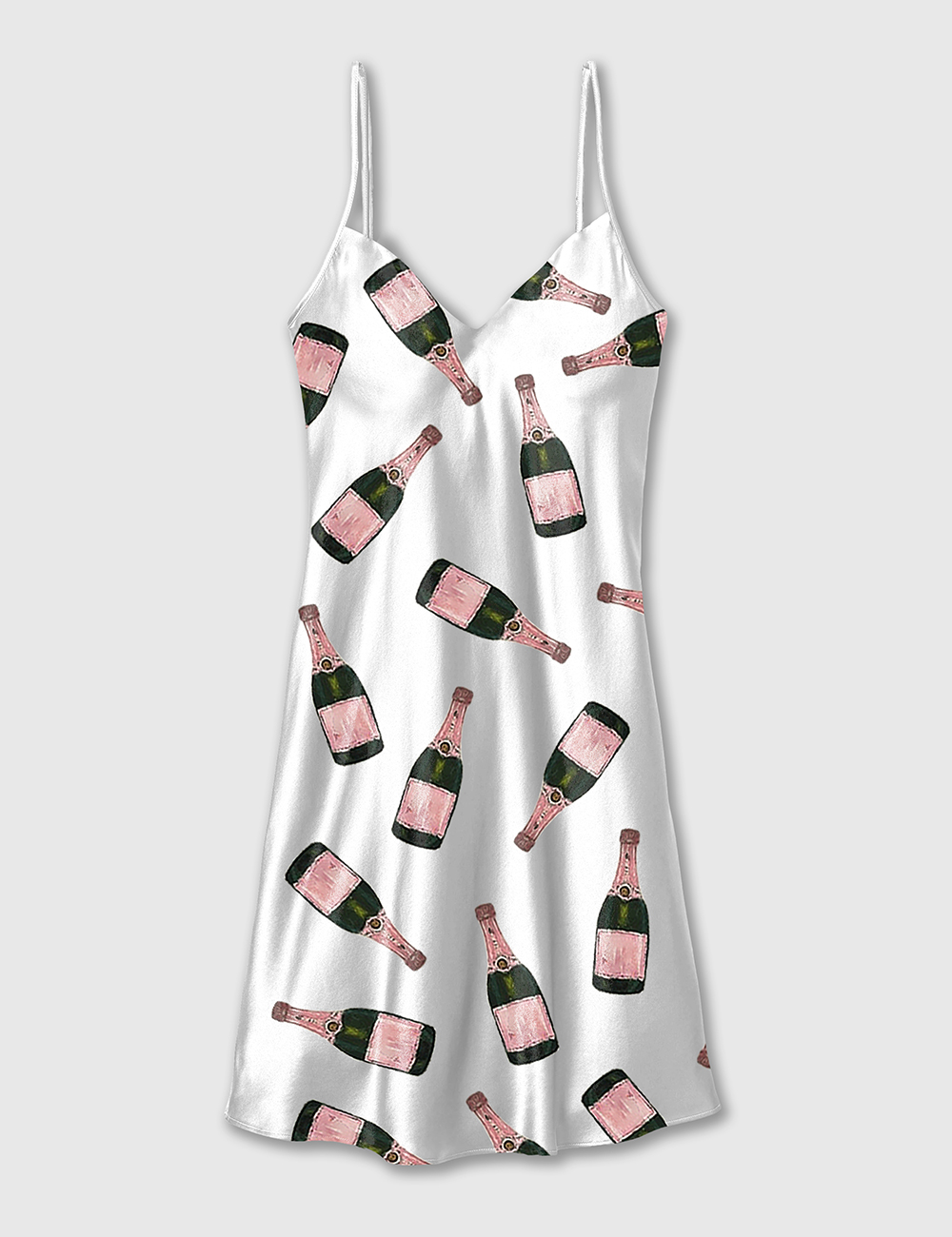 Women’s Champagne Bottle Camisole Satin Pajama Dress