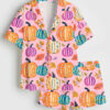 Women’s Chinoiserie Toile de Jouy Light Blue & White Floral Print Short Sleeve Satin Pajama Set