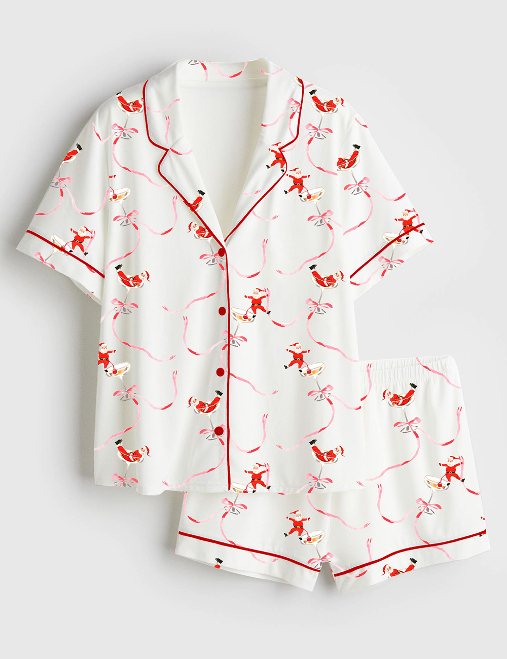 Women’s Christmas Santa Martini Cocktail Short Sleeve Satin Pajamas Set