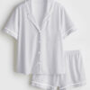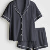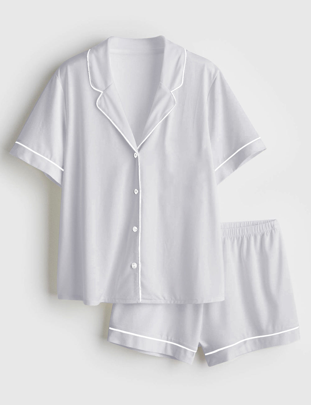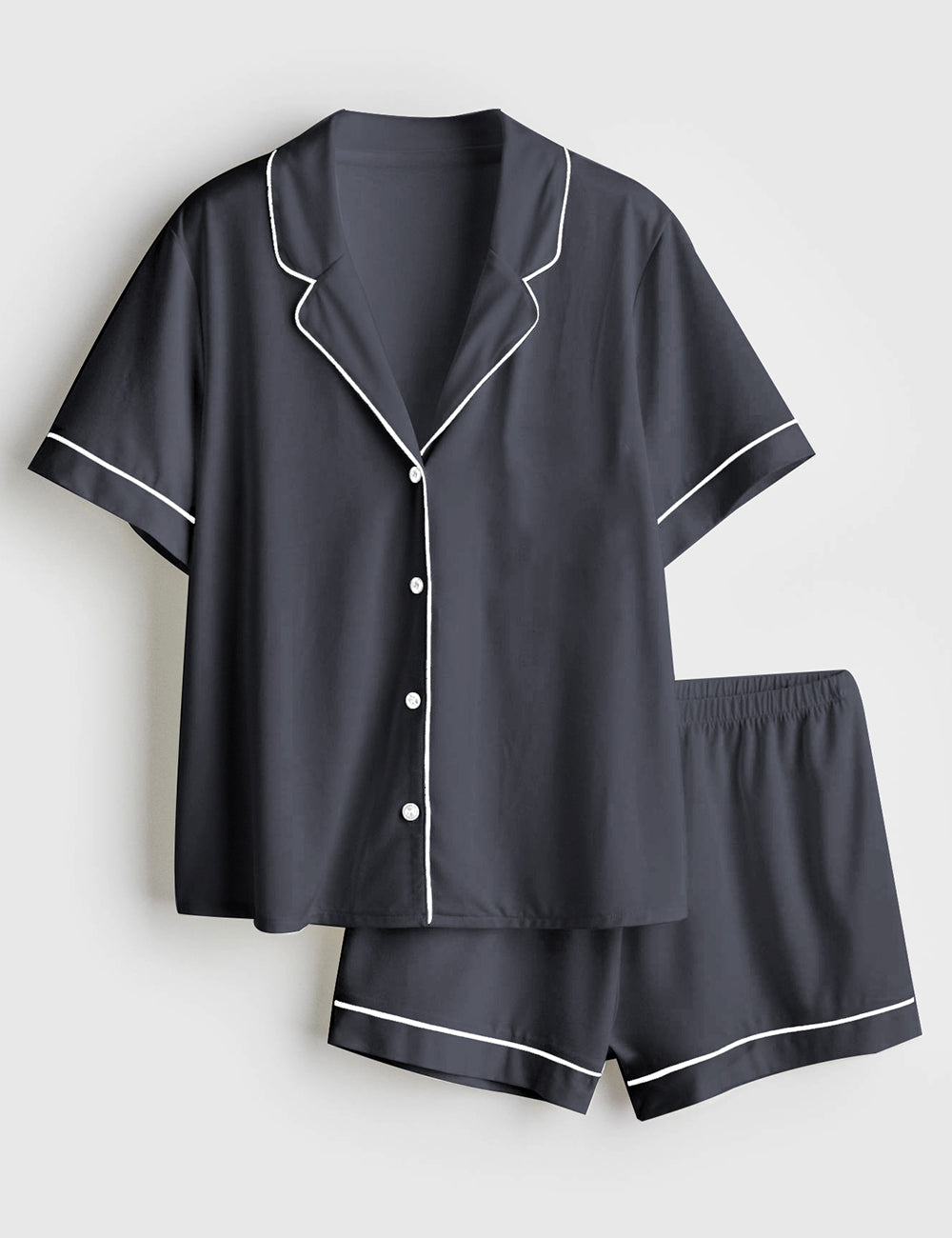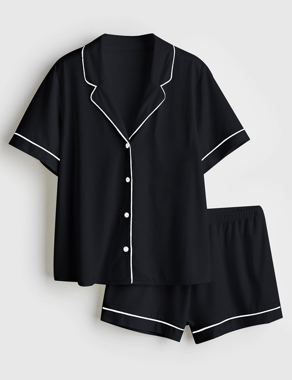 Women’s Classic Solid Color Short Sleeve Satin Pajamas Set