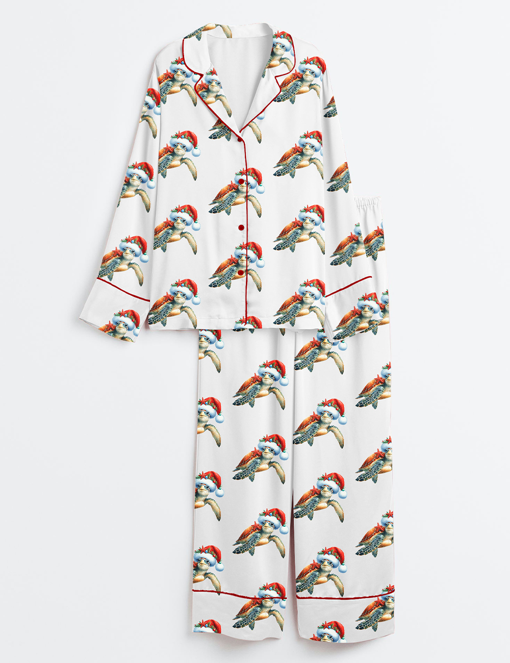 Women’s Coastal Christmas Sea Turtle Beach Holiday Long Sleeve Silky Satin Pajamas Set