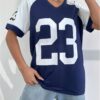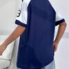 Women’s Color Block V Neck Half Sleeve T-Shirt Basketball Jersey Tee Casual Streetwear Top