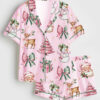 Women’s Coquette Seashell Beach Coastal Retro Summer Vibes Print Long Sleeve Satin Pajamas Set