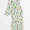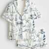Women’s Coquette Seashell Beach Coastal Summer Vibes Print Short Sleeve Satin Pajama Set