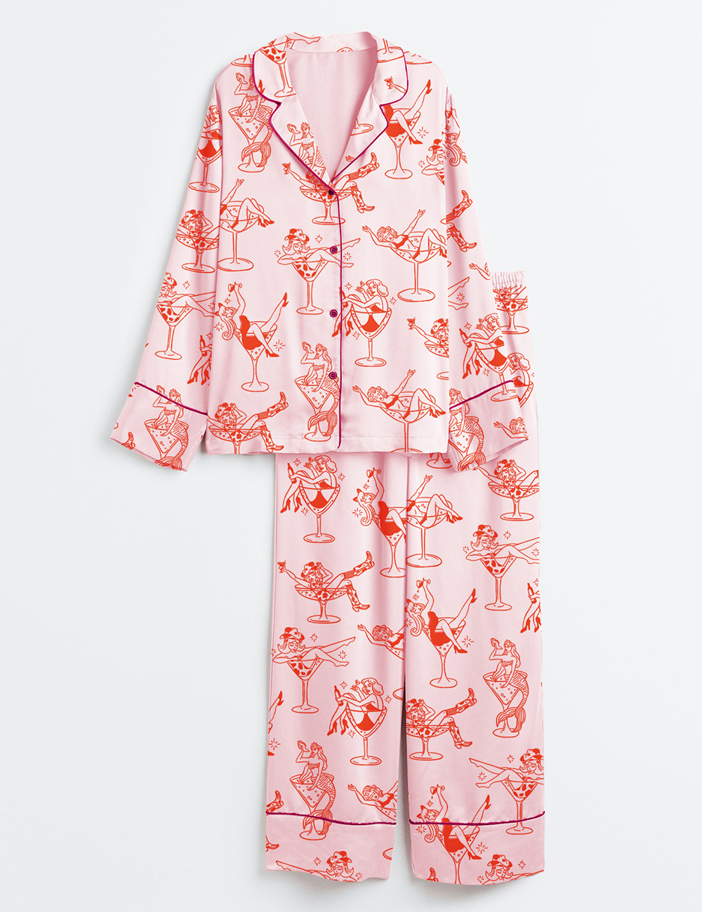 Women’s Cowgirl Girl Woman In Martini Glass Mermaid Catgirl In Glass Long Sleeve Satin Pajamas Set