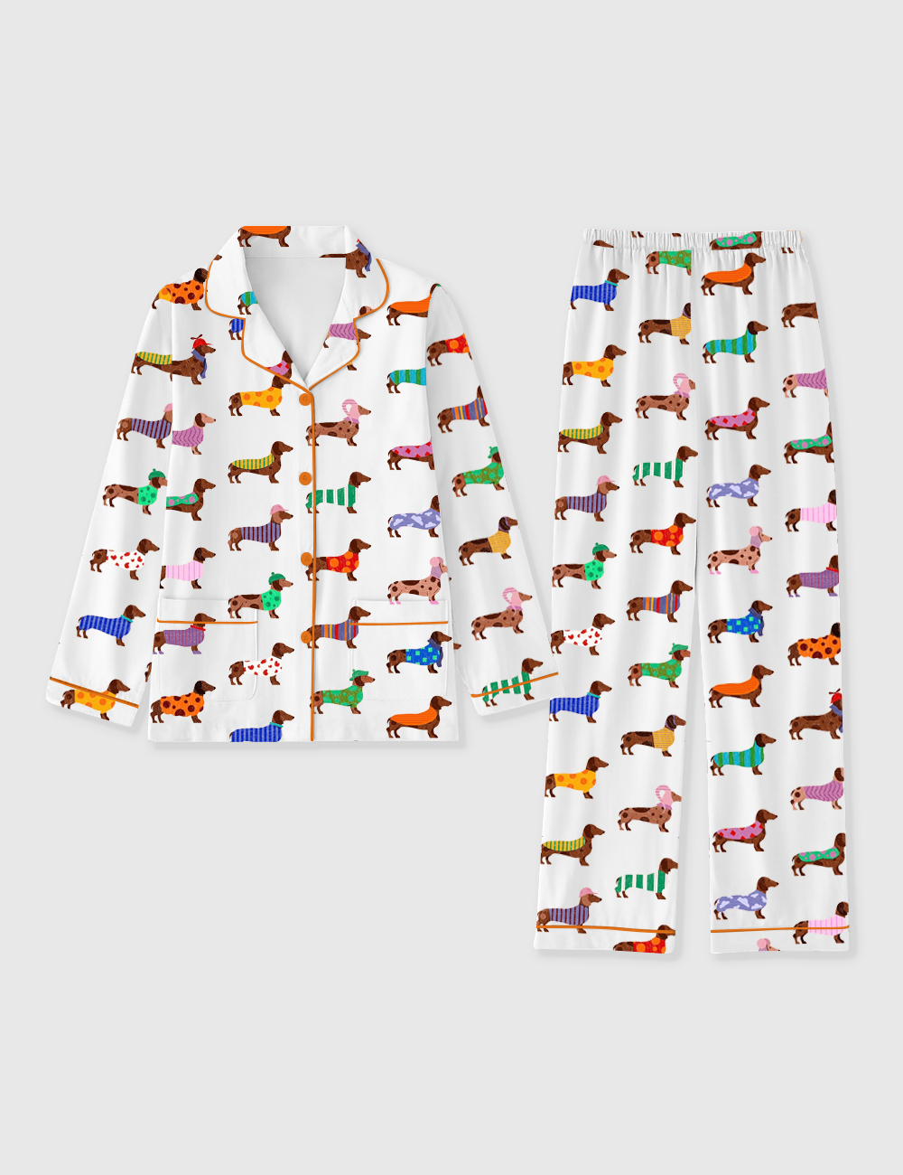 Women’s Dachshund Cute Dog Long Sleeve Pocket Cotton Pajamas Set