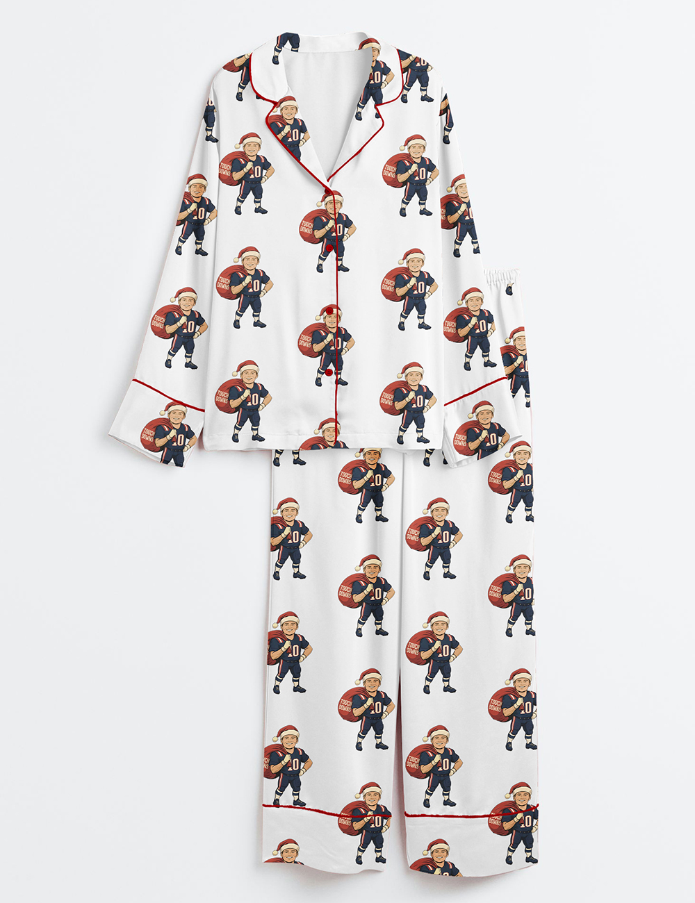 Women’s Drake Maye New England Christmas Patriots Football Long Sleeve Satin Pajamas Set