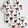 Women’s French Bulldog Cute Frenchie Head Summer Beach Cold Beer Alcohol Print Long Sleeve Satin Pajama Set