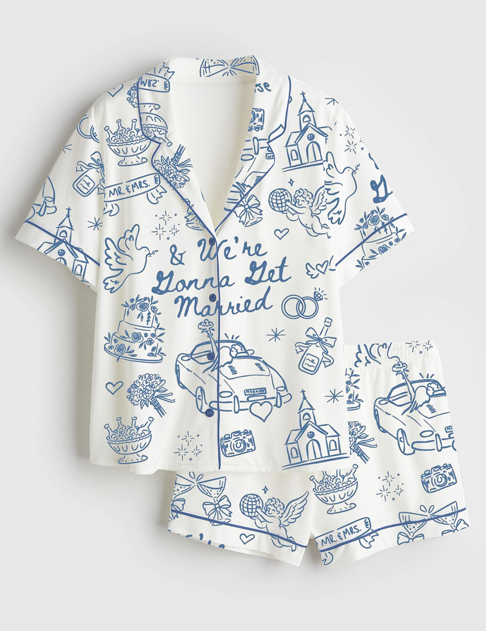Women’s Going To The Chapel We’re Gonna Get Married Wedding Short Sleeve Satin Pajama Set