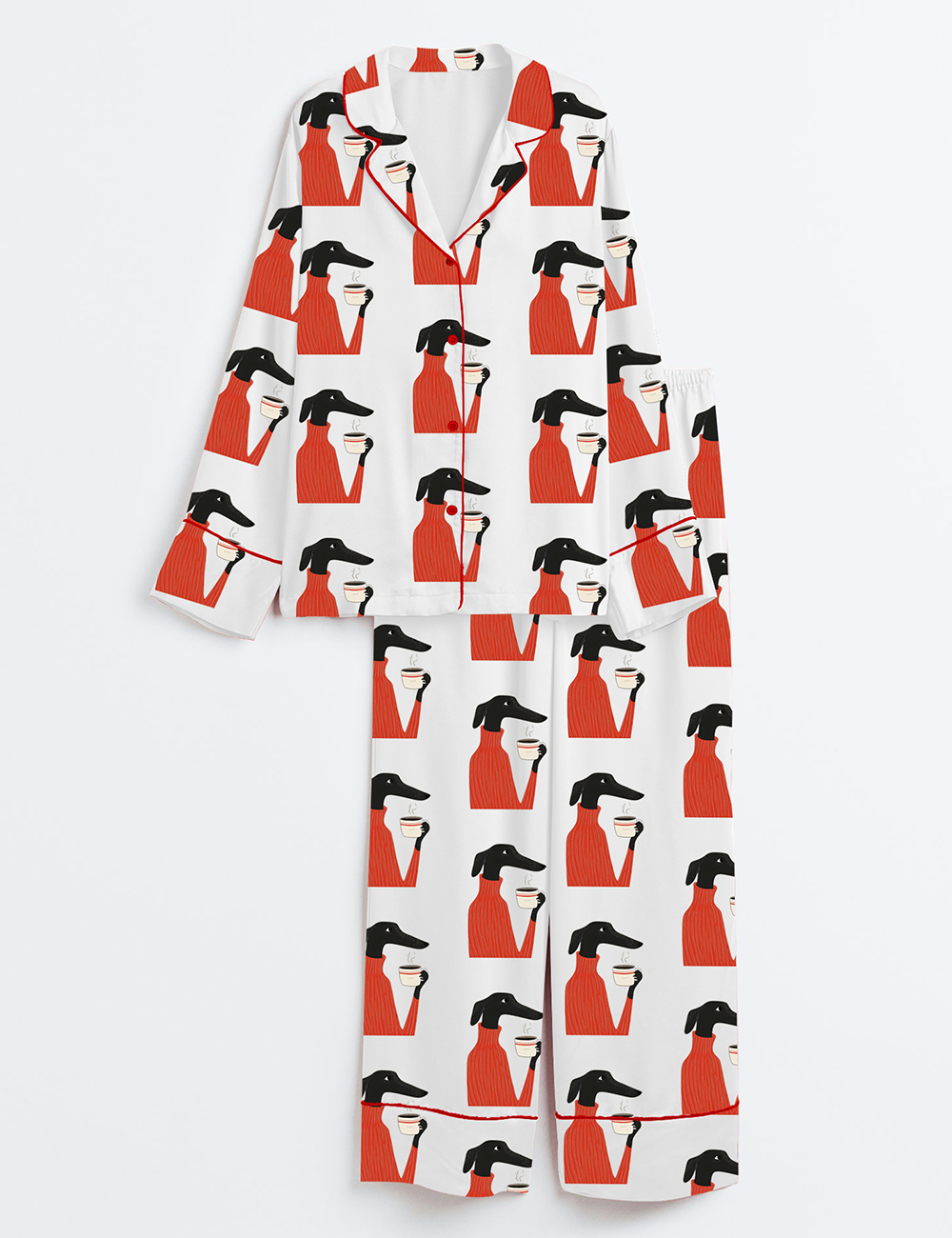 Women’s Greyhound Coffee Long Sleeve Satin Pajamas Set