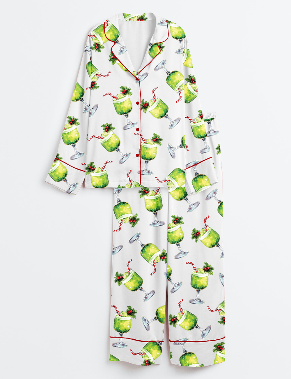 Women’s Grinch Punch Watercolor Christmas Cocktails Holiday Drinks Long Sleeve Satin Pajamas Set