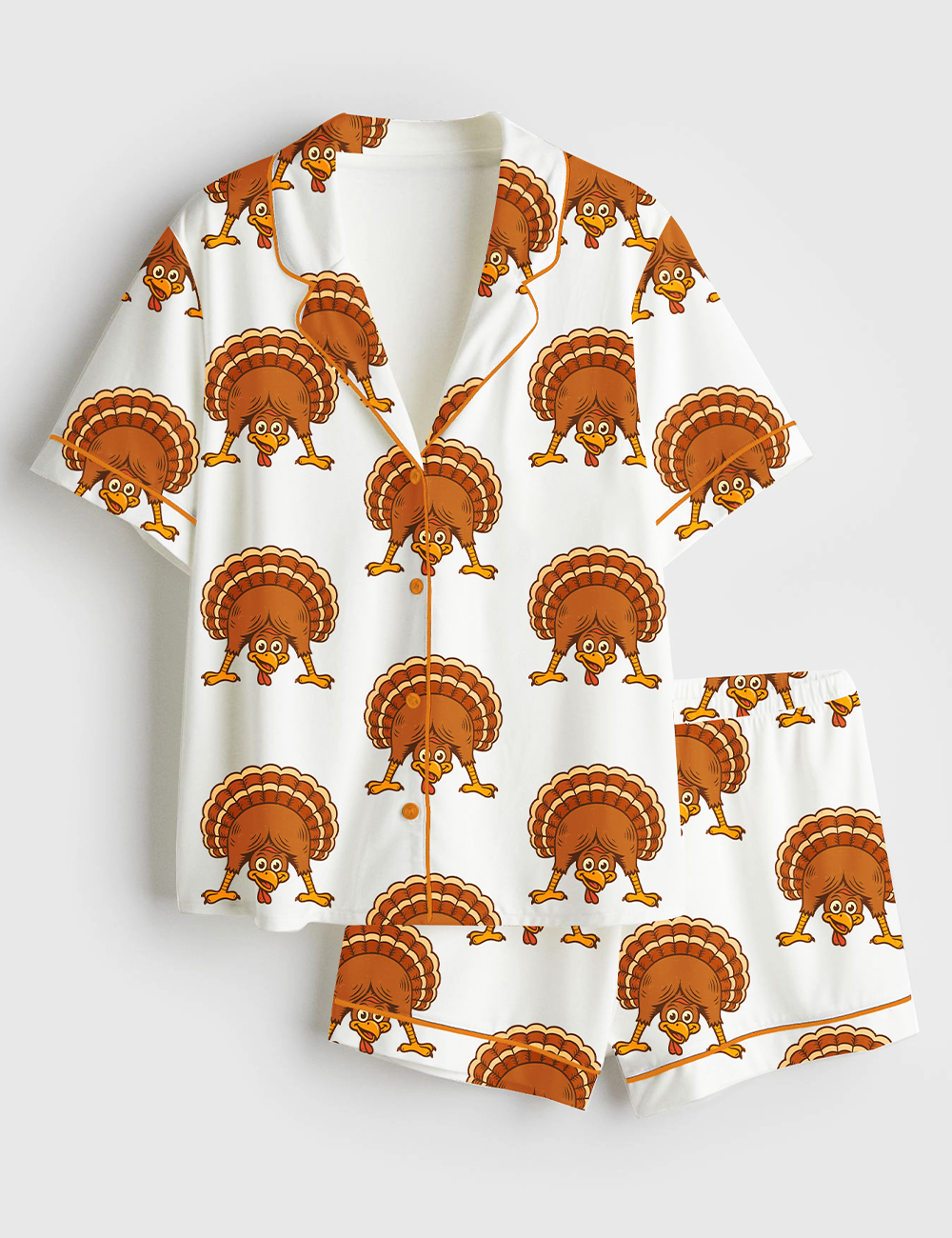 Women’s Guess What Turkey Butt Thanksgiving Gobble Till You Wobble Short Sleeve Satin Pajama Set