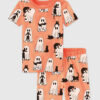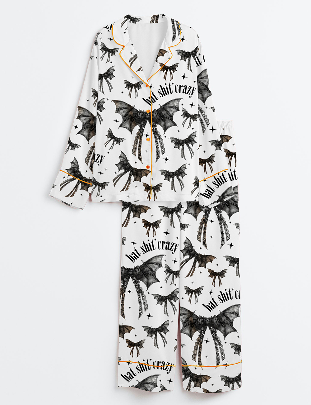 Women’s Halloween Bat Shit Crazy Gothic Coquette Bow Long Sleeve Satin Pajama Set