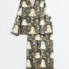 Women’s Halloween Cute Ghost Halloween Mushroom Flowers Print Long Sleeve Satin Pajamas Set