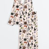 Women’s Halloween Spooky Girl Squad Skeleton Ghost Pumpkin Witchy Print Long Sleeve Satin Pajamas Set
