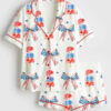 Women’s Hand Drawn Tiki And Tropical Drinks Luau Party Print Short Sleeve Satin Pajama Set