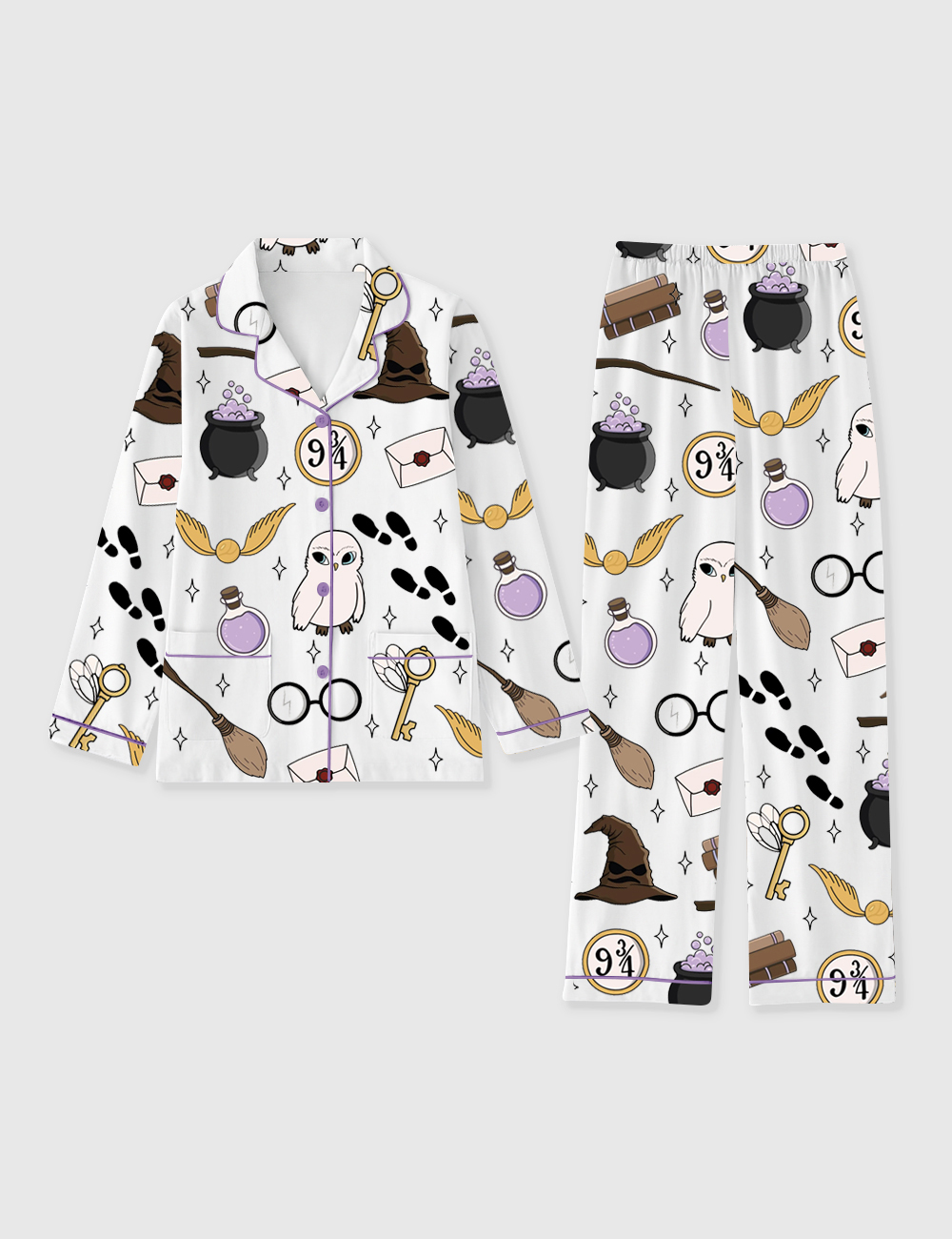 Women’s HP Wizards Magic Academy School Long Sleeve Pocket Cotton Pajama Set
