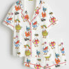Women’s Just A Silly Goose Summer Cute Retro Goose Print Long Sleeve Satin Pajama Set