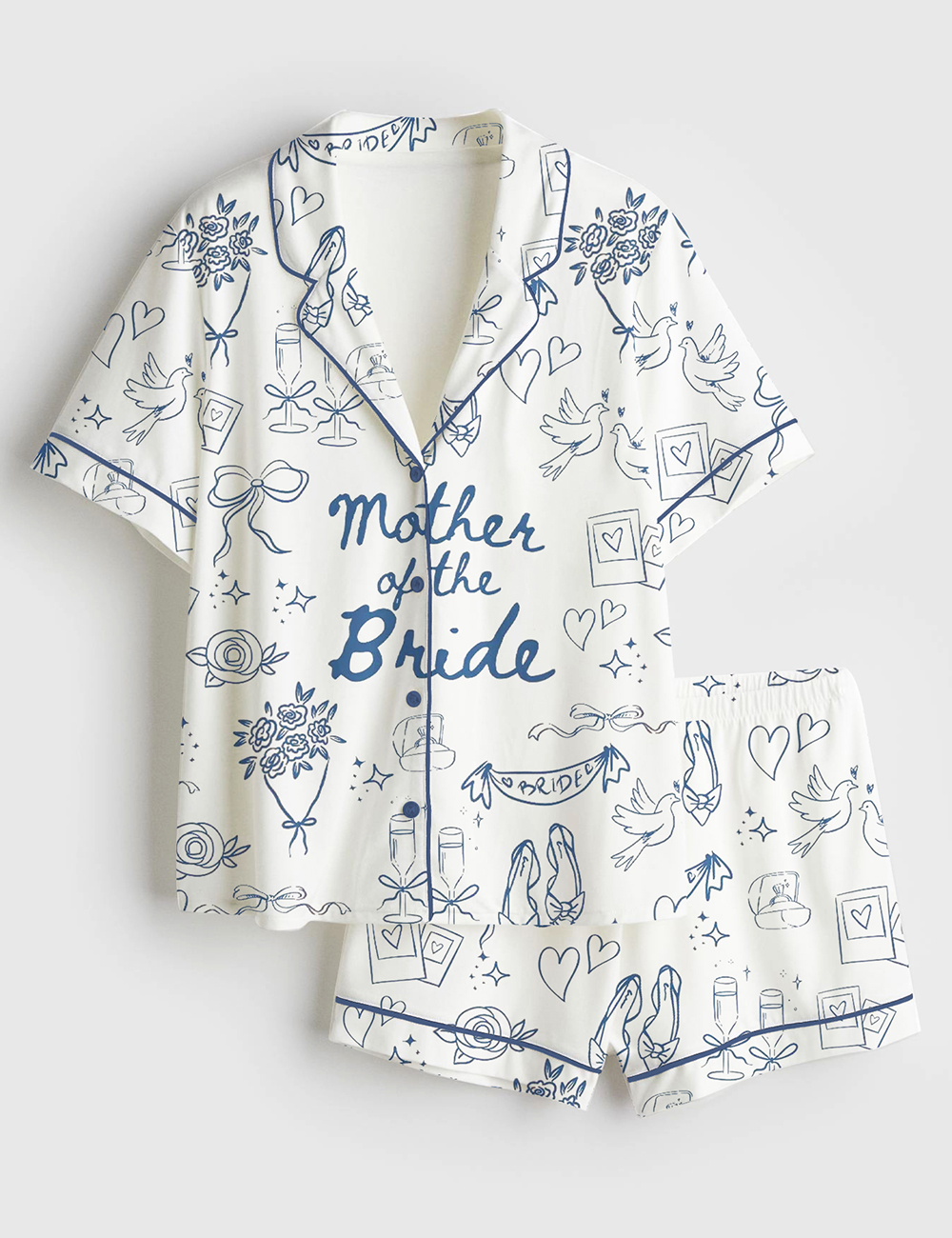 Women’s Mother Of The Bride Going To The Chapel Getting Ready Wedding Party Print Short Sleeve Satin Pajama Set