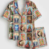 Women’s Noir Cat Face (black) Short Sleeve Satin Pajama Set