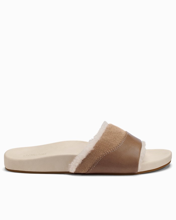 Always feel comfy and cozy in the Ho’ala slide slippers, crafted from a rich combination of leather and suede with plush shearling lining.