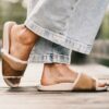 - Shearling lined straps.