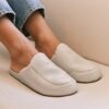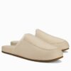 - Feature: An elevated and stylish, asymmetrical two-piece, full-grain leather form with molded bucket footbed that hugs the heel in comfort.