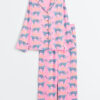 Women’s Pink Coquette Bows Floral Pattern Long Sleeve Satin Pajamas Set