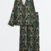 Women’s Retro Spooky And Feral Raccoon Halloween Feral Girl Creepy Cute Raccoon Ghost Print Long Sleeve Satin Pajama Set