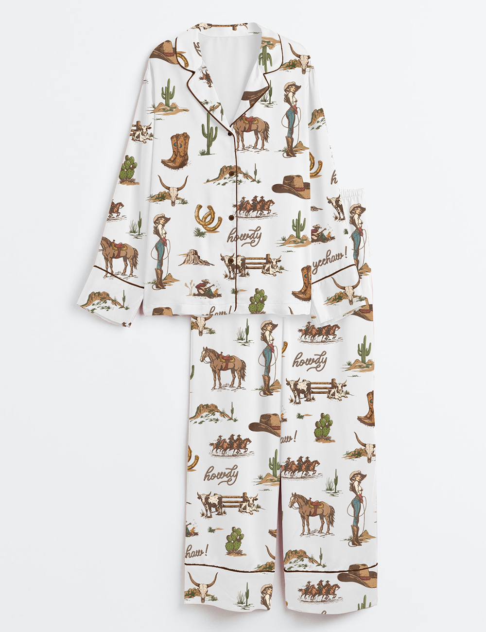 Women’s Rustic Americana Western Vintage Cowboy Long Sleeve Satin Pajamas Set