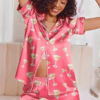 - Short-sleeve, button-front design with a turn-down collar, chest pocket, and contrast piping—classic and stylish for sleepwear, loungewear, or hosting guests.