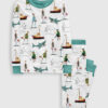 Women’s Shark Movie Amity Island Sea Travel Long Sleeve Satin Pajama Set