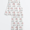 Women’s Silly Goose On The Loose Coquette Bows Hand Drawn Cottagecore Preppy Goose Print Long Sleeve Satin Pajamas Set