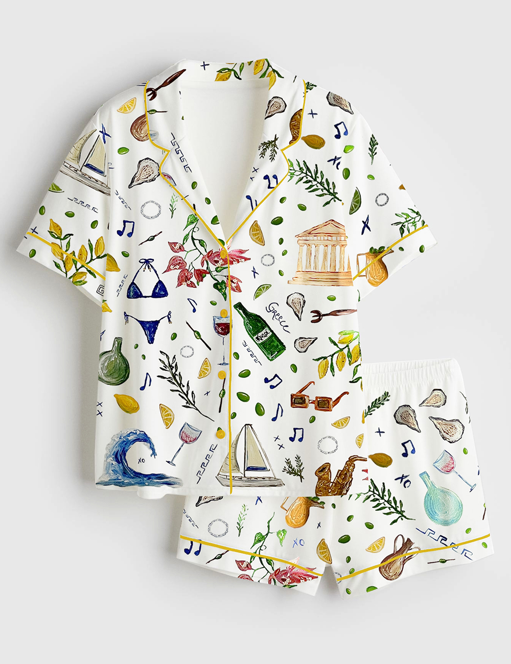 Women’s Summer Print Short Sleeve Satin Pajama Set
