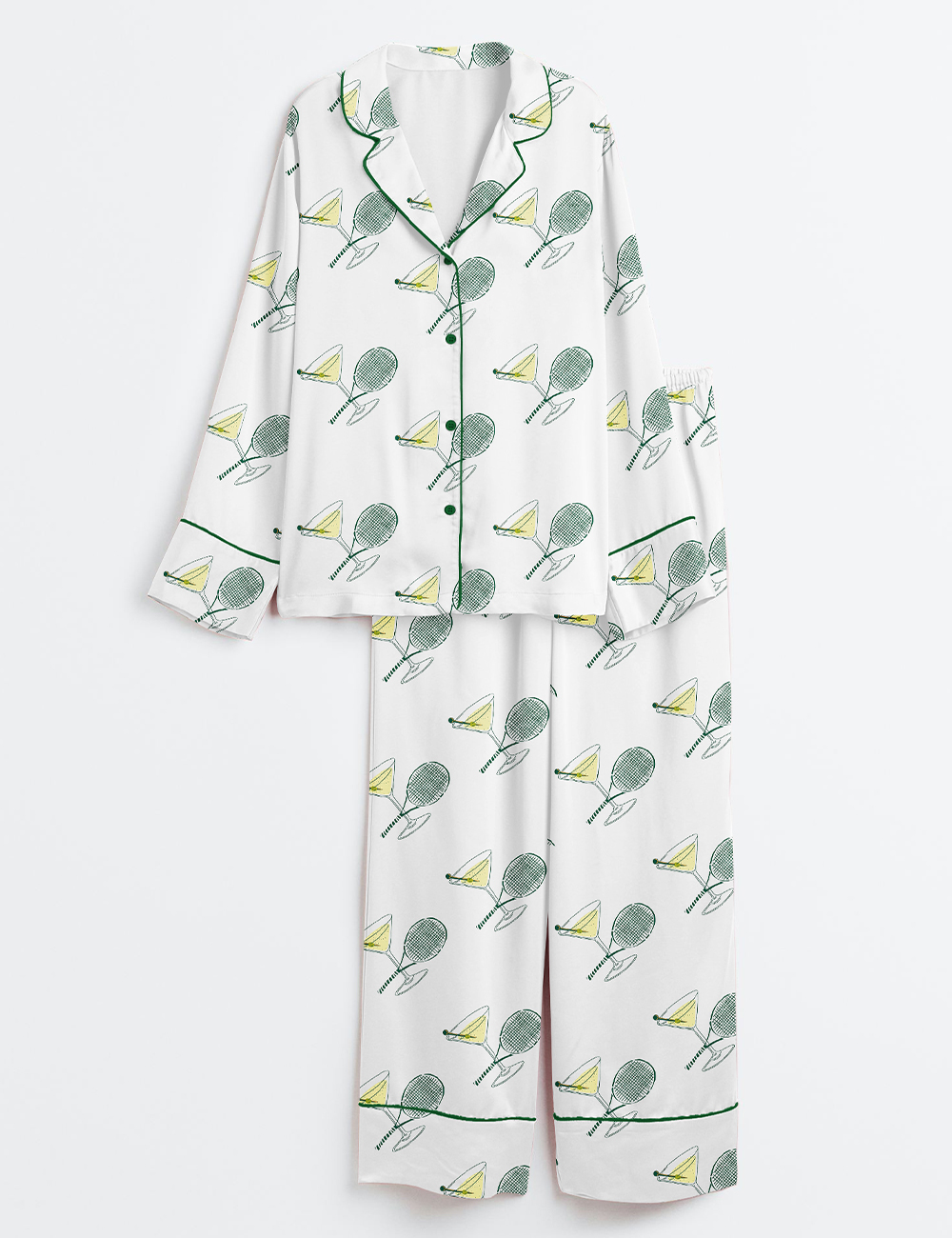 Women’s Tennis And Tinis Sports Martini Long Sleeve Satin Pajamas Set