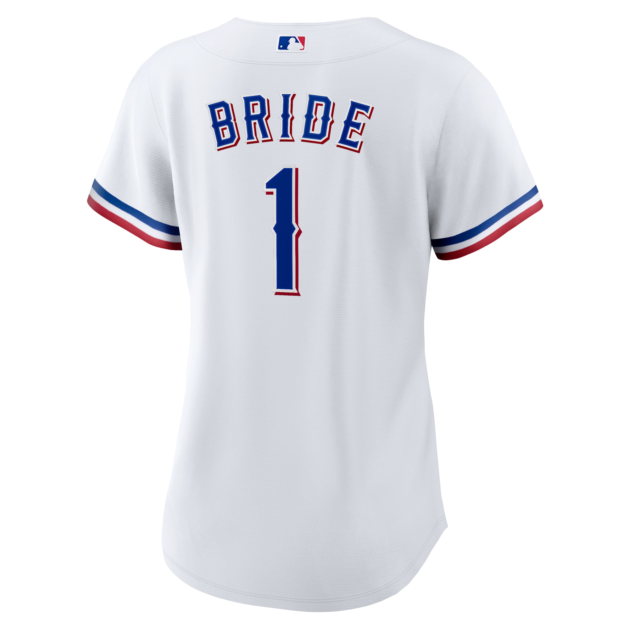 Women’s Texas Rangers White #1 Bride Home Baseball Jersey – JS619