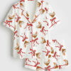 Women’s Tropical Beach Christmas Flamingos Palm Trees Snowmen Coastal Holiday Short Sleeve Satin Pajama Set