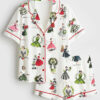 Women’s Vintage Christmas Lady Retro Holiday Fashion Long Sleeve Satin Pajama Set