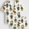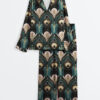 Women’s Vintage Elegant Art Deco Bats And Flowers Teal Fan Print Short Sleeve Satin Pajama Set