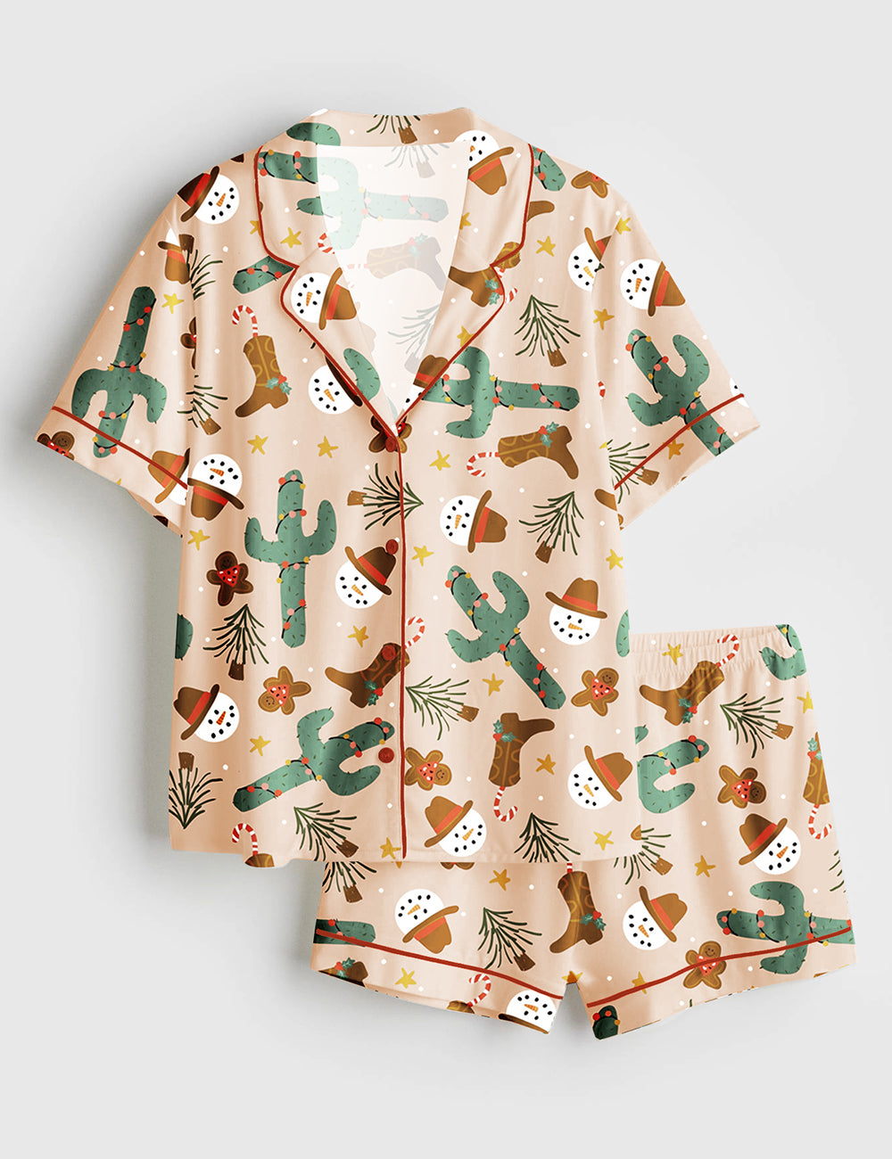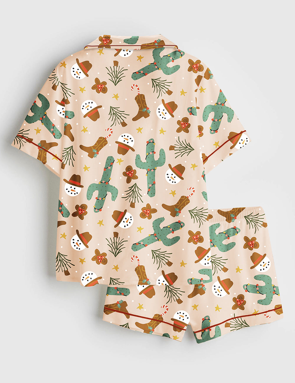 Women’s Xmas Western Cowboy Boots Short Sleeve Satin Pajama Set