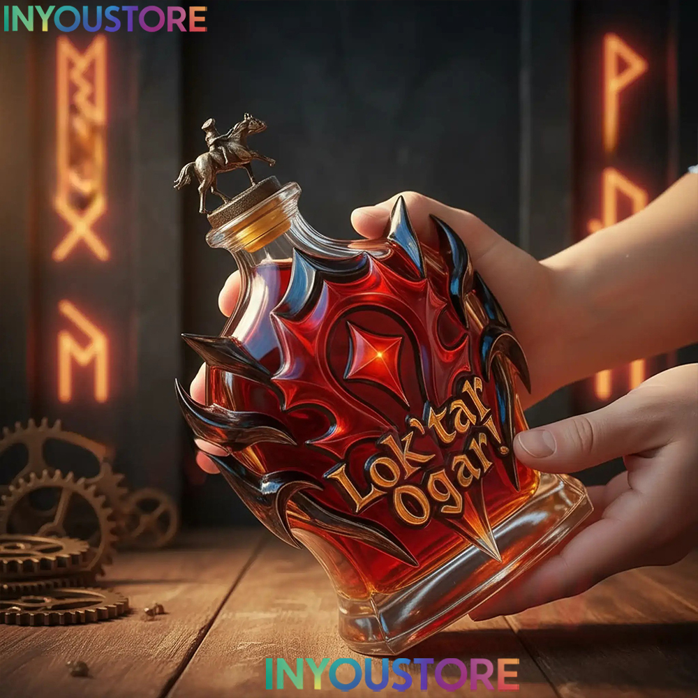 An ideal gift for World of Warcraft players, Horde loyalists, and fantasy collectors, this Lok’tar Ogar whiskey bottle is more than a drinkware piece — it’s a symbol of loyalty and victory.