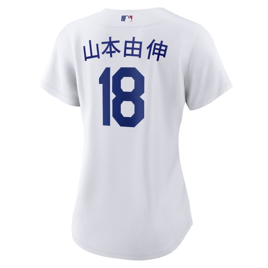 Yoshinobu Yamamoto 18 Los Angeles Dodgers Women’s Home 2024 World Series Japanese Lettering Baseball Jersey – White