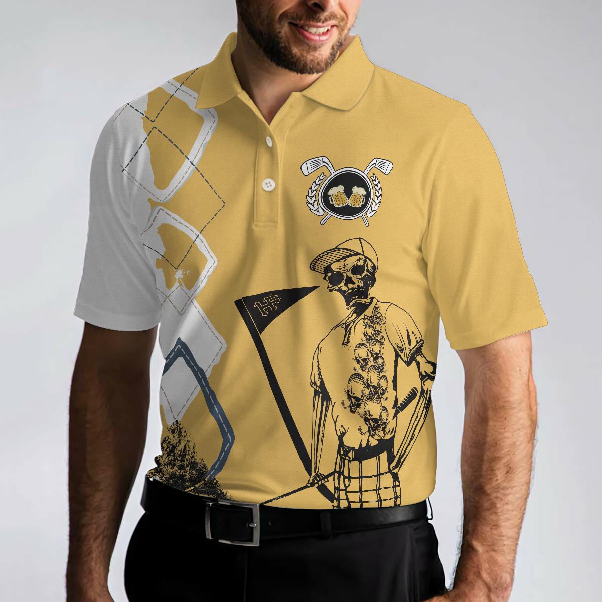 You Know What Rhymes With Golf Beer Polo Shirt, Funny Golf Shirt For Men, Yellow And White Beer Shirt