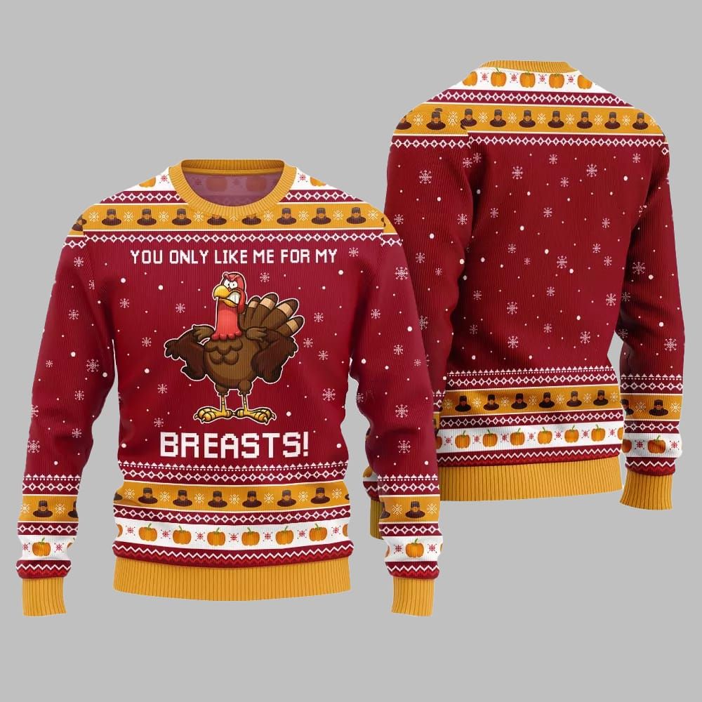 You Only Like Me For My Breasts Ugly Sweater Thanksgiving 2025 – Grishko.com