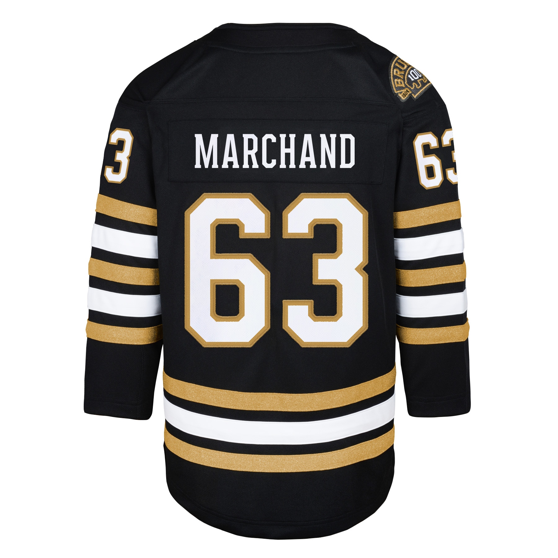 Youth Boston Bruins Brad Marchand Black 100th Anniversary Premier Player Hockey Jersey – JS378