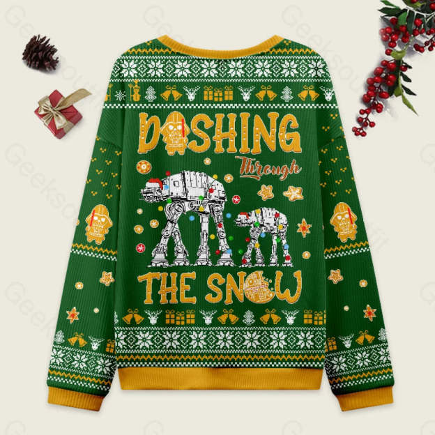 AT Walker Dashing Through The Snow Green Ugly Christmas Fuzzy Fleece Sweatshirt