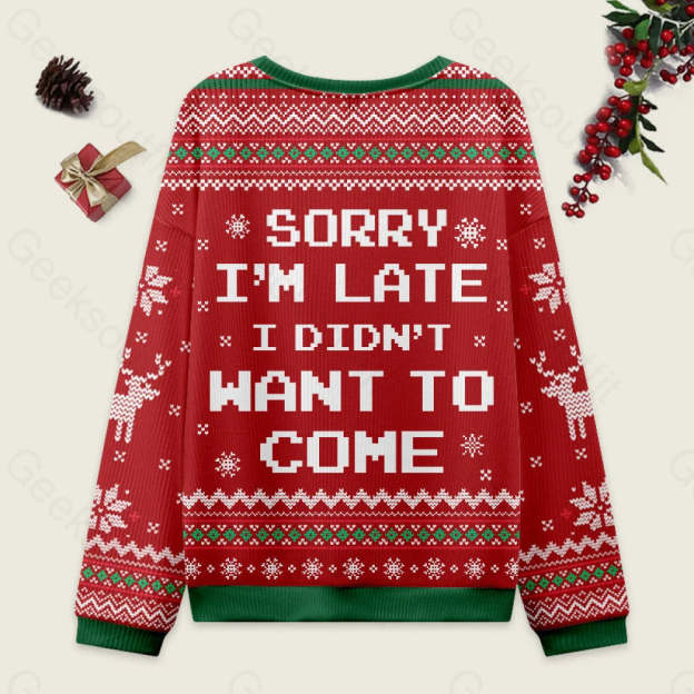 Sorry I’m Late. I didn’t Want to Come Red Ugly Christmas Fuzzy Fleece Sweatshirt
