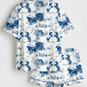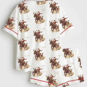 Women’s Vintage Western Cowboy Short Sleeve Satin Pajama Set