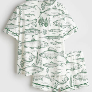 Women’s Vintage Fish Tattoo Style Bass Lovers Ocean Fisher Print Short Sleeve Satin Pajama Set