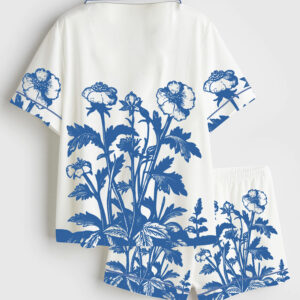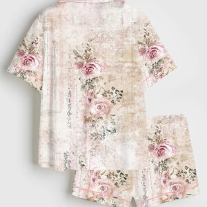 Women’s Vintage Wildflowers 90s Retro Flowers Art Print Short Sleeve Satin Pajama Set